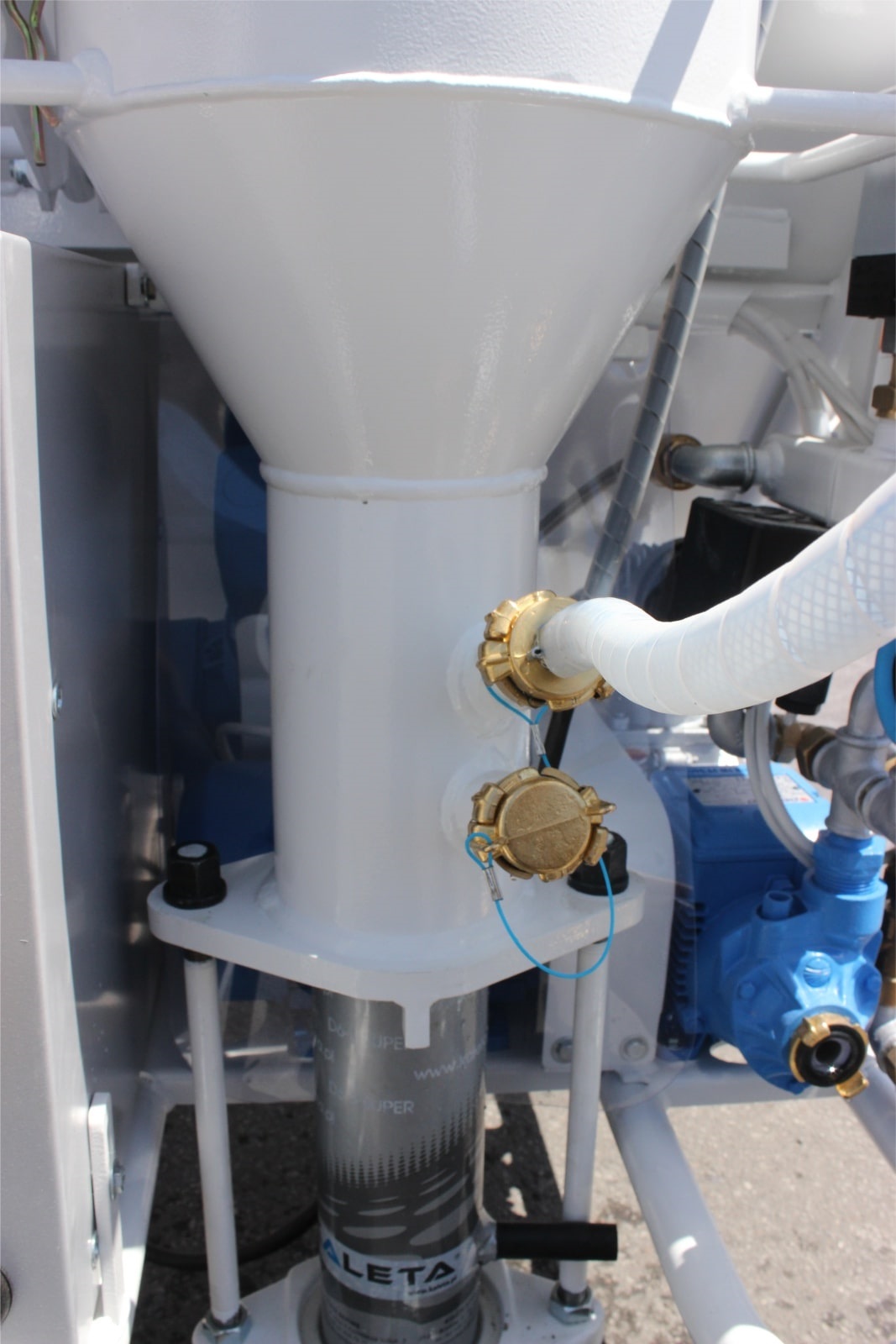 - Возможность разделить штукатурную станцию Калета-6 на 3 основные части: смесительная колонна, загрузочный бункер, рама с электрической системой, системой подачи воды и воздуха, что значительно облегчает перемещение агрегата на строительных площадках, так же упрощает транспортировку по строительному объекту и погрузку штукатурной станции Калета-6 на транспортные средства.